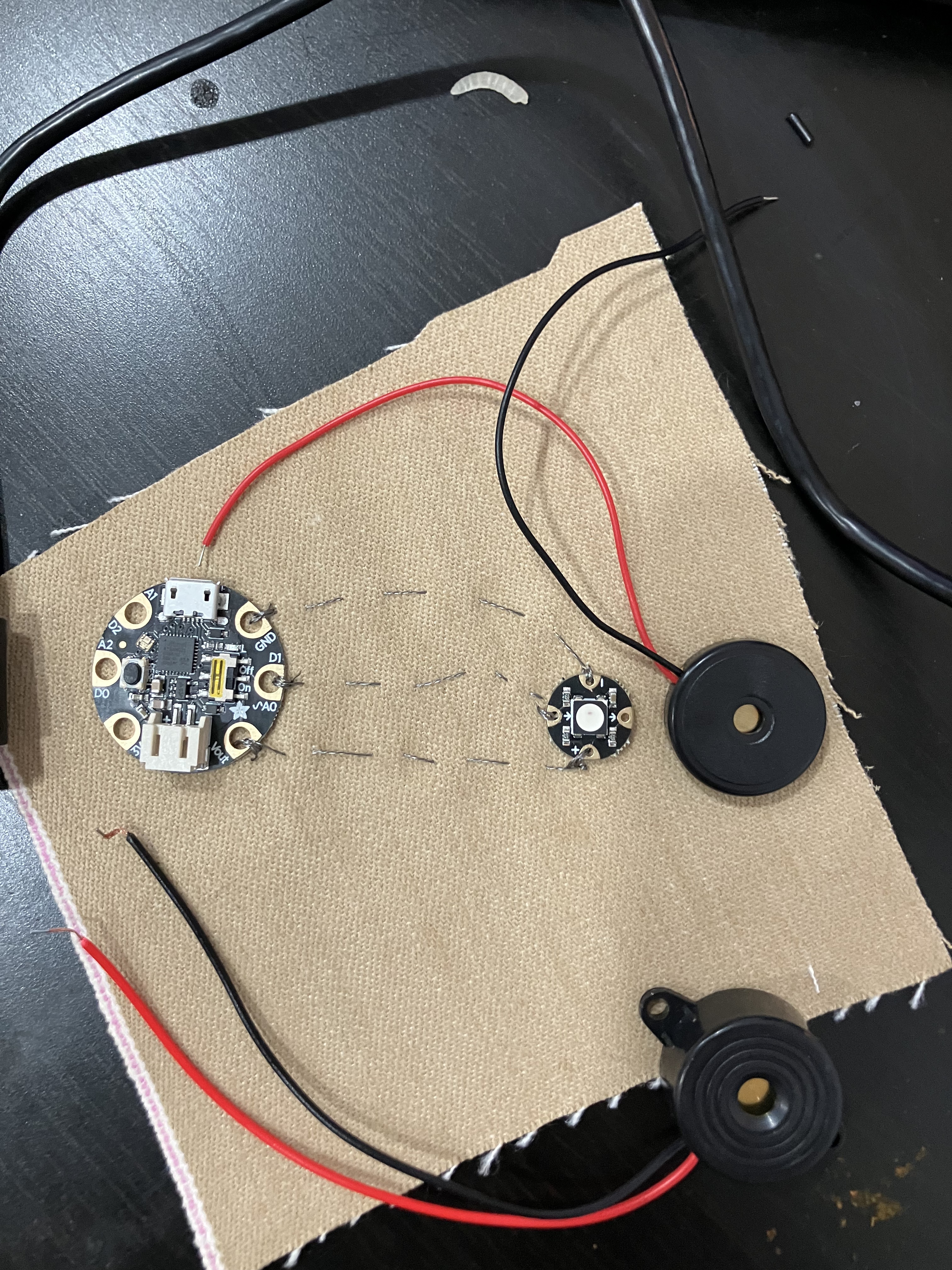 The wires are insulated, so unlike our sewn circuit thread, we don’t need to worry about them touching.