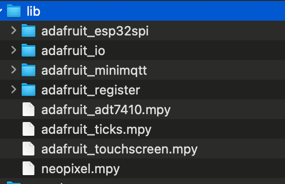 Step 2: Make sure you update the libraries on the CIRCUITPY board – download the DataLoggerLibraries.zip file here, or you can manually libraries from wherever you downloaded your library folder until the lib folder on CIRCUITPY looks like this: